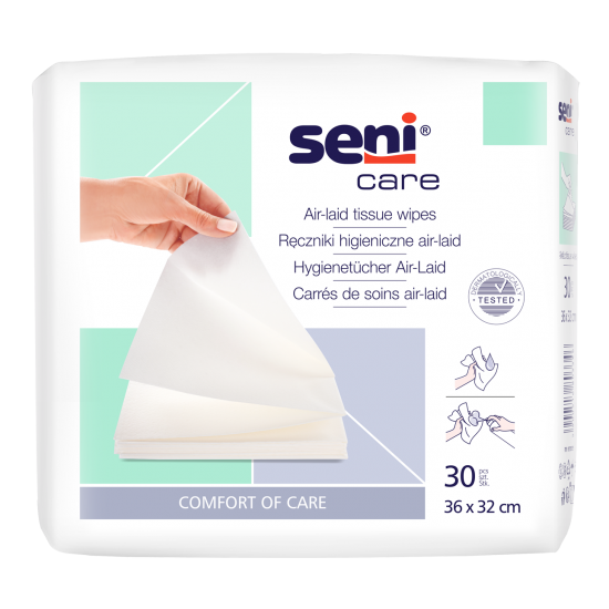 Die Seni Care Hygienetücher sind aus speziellem, hoch absorbierendem Air-Laid Stoff – ideal für die tägliche Pflege.
