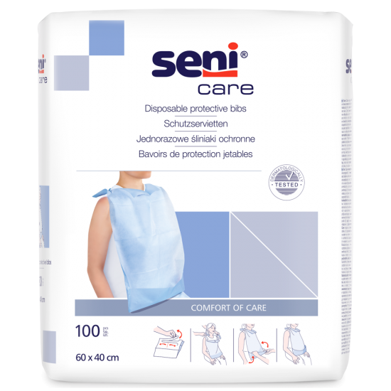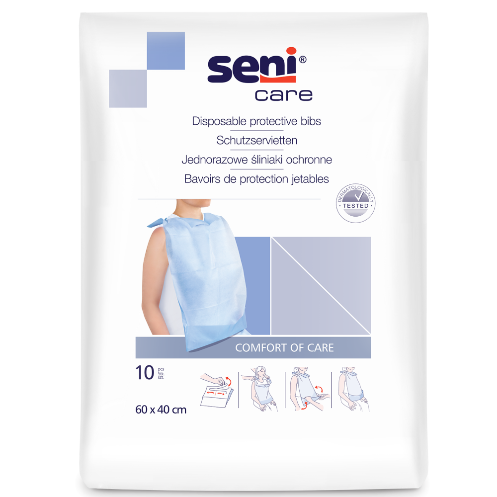 Die Seni Care Schutzservietten schützen die Kleidung während der Nahrungsaufnahme und Gesichtspflege.
