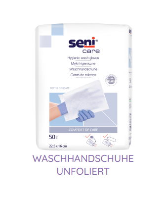 Falls Sie Pflegeprodukte ohne Wasser benutzen wollen, nutzen Sie am besten die Seni Care Waschhandschuhe foliert.