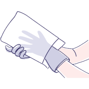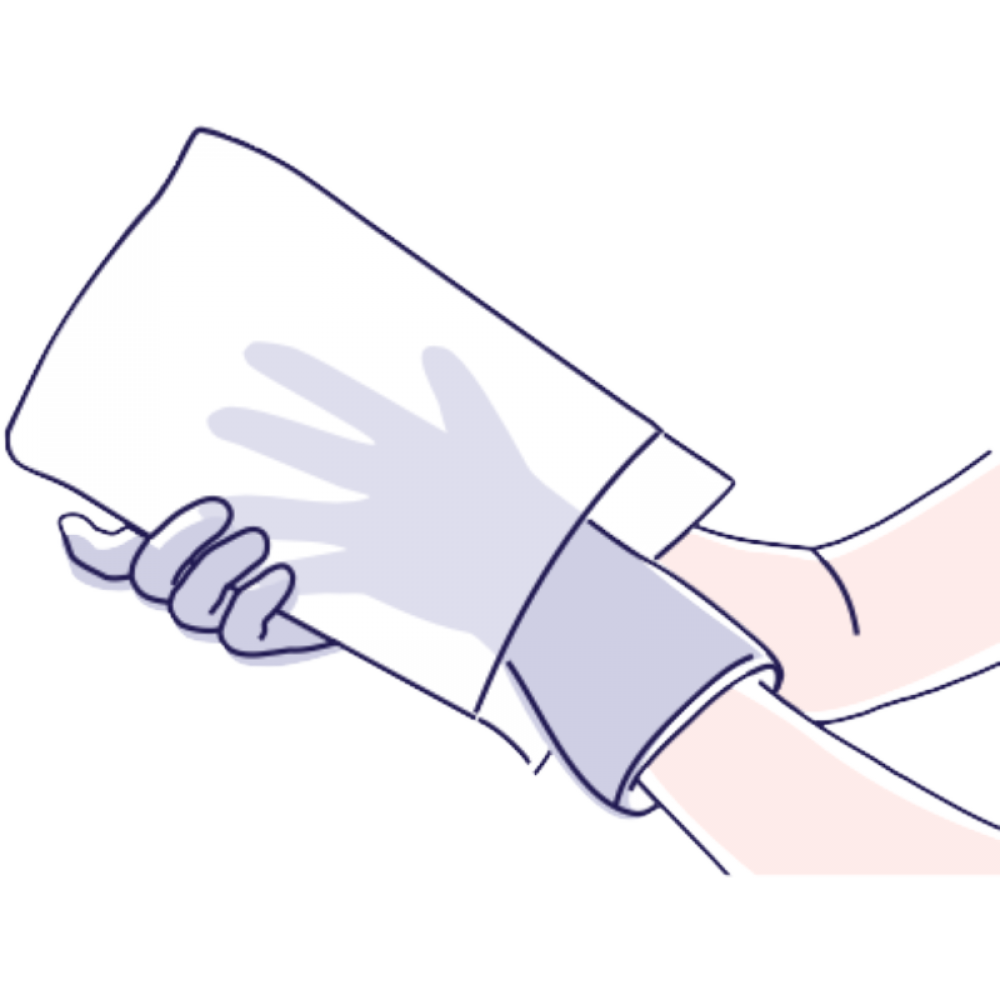 Die Seni Care Einmal-Waschhandschuhe aus Vliesstoff ohne Folienbeschichtung im Inneren – ideal zum Auftragen von Pflegeprodukten, die mit Wasser verwendet werden.