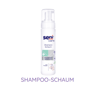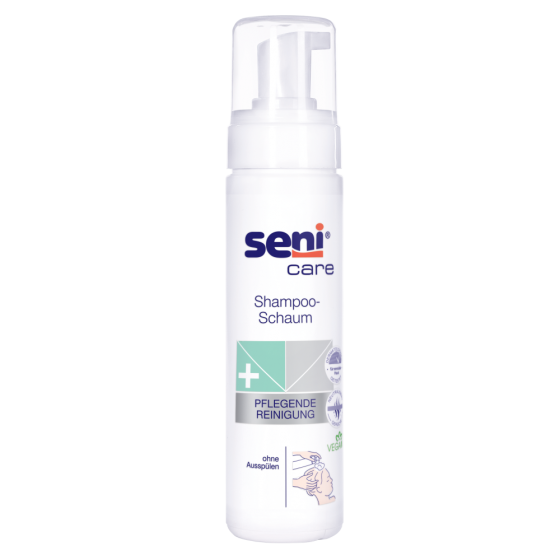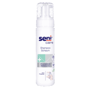 Der Seni Care Shampoo-Schaum verleiht dem Haar einen gesunden Glanz und wirkt gegen Reizungen der Kopfhaut – ganz ohne Wasser.