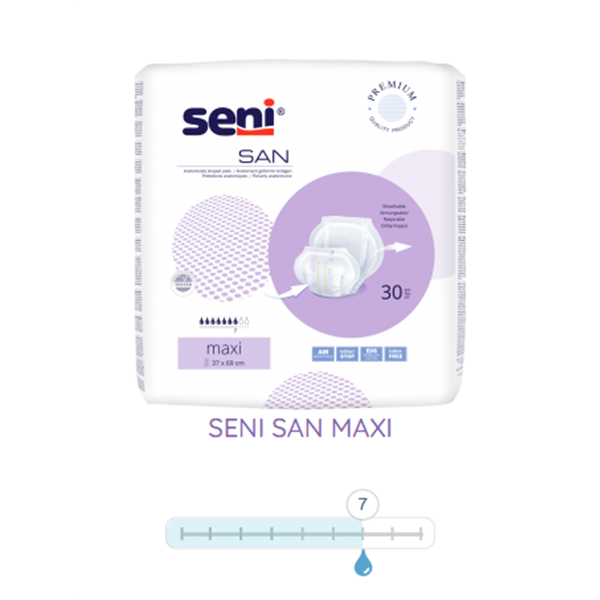 Die atmungsaktiven, anatomisch geformten Vorlagen Seni San Maxi sind die optimale Lösung bei mittlerer Blasenschwäche. Sie wurden für Menschen entwickelt, die Schwierigkeiten haben, abseits der „Standardgrößen“ ein passendes Produkt zu finden.