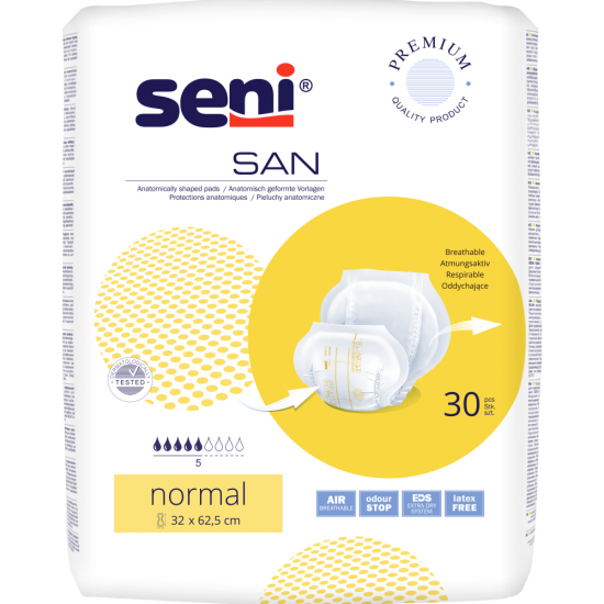 Die atmungsaktiven, anatomisch geformten Vorlagen Seni San Normal sind die optimale Lösung bei mittlerer Blasenschwäche. Sie wurden für Menschen entwickelt, die Schwierigkeiten haben, abseits der „Standardgrößen“ ein passendes Produkt zu finden.