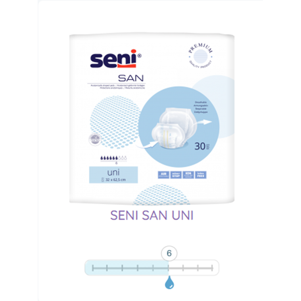 Die anatomisch geformten Vorlagen Seni San Uni sind für Betroffene konzipiert, die Diskretion und Komfort schätzen. Eine perfekte Lösung für Personen mit eingeschränkter Mobilität, Rollstuhlfahrer und Menschen, die dauerhaft immobilisiert oder übergewichtig sind.